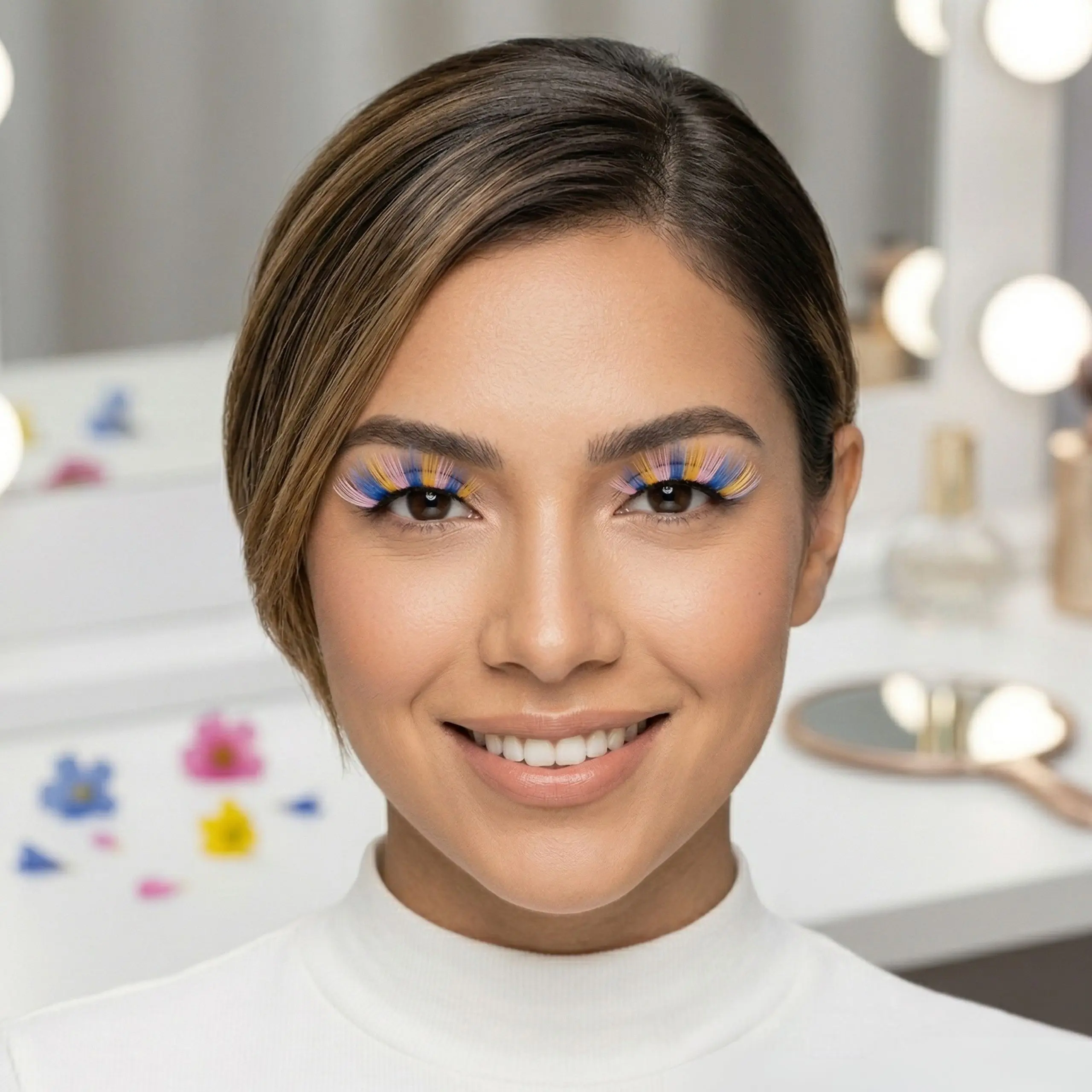 ¡Dale vida a tu mirada! Estas pestañas tricolores (azul, amarillo y rosa) son el accesorio definitivo para quienes buscan salir de lo convencional. Diseñadas para el maquillaje artístico y festivales, combinan fibras suaves con un degradado vibrante que garantiza una mirada impactante en segundos. Si buscas comprar pestañas postizas originales que destaquen en cualquier evento, este es tu producto.