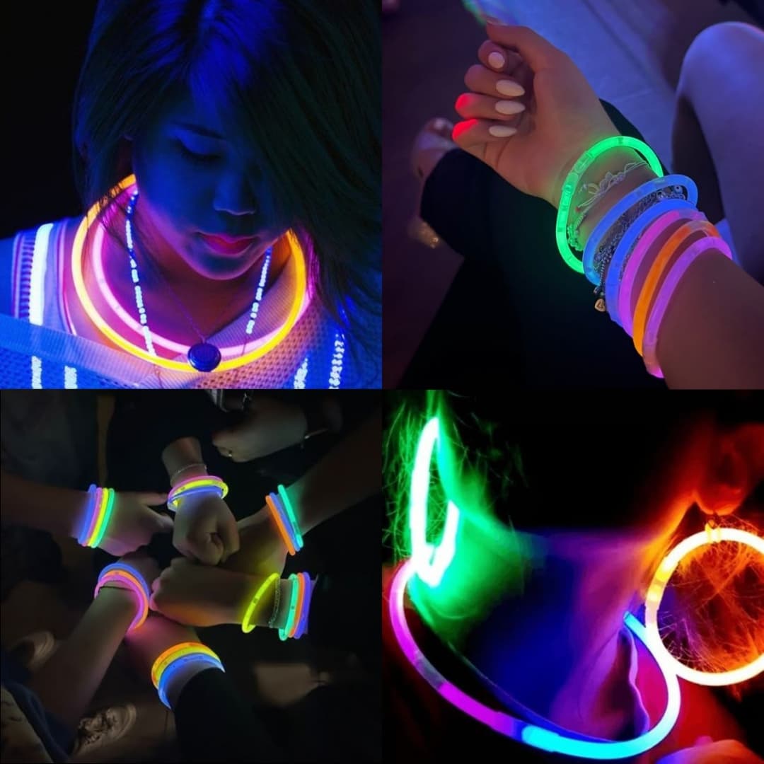 Mega pack de 500 pulseras fluorescentes multicolor para iluminar cualquier fiesta. Brillan hasta 12 horas sin electricidad. ¡Ideal para bodas, conciertos y celebraciones!
