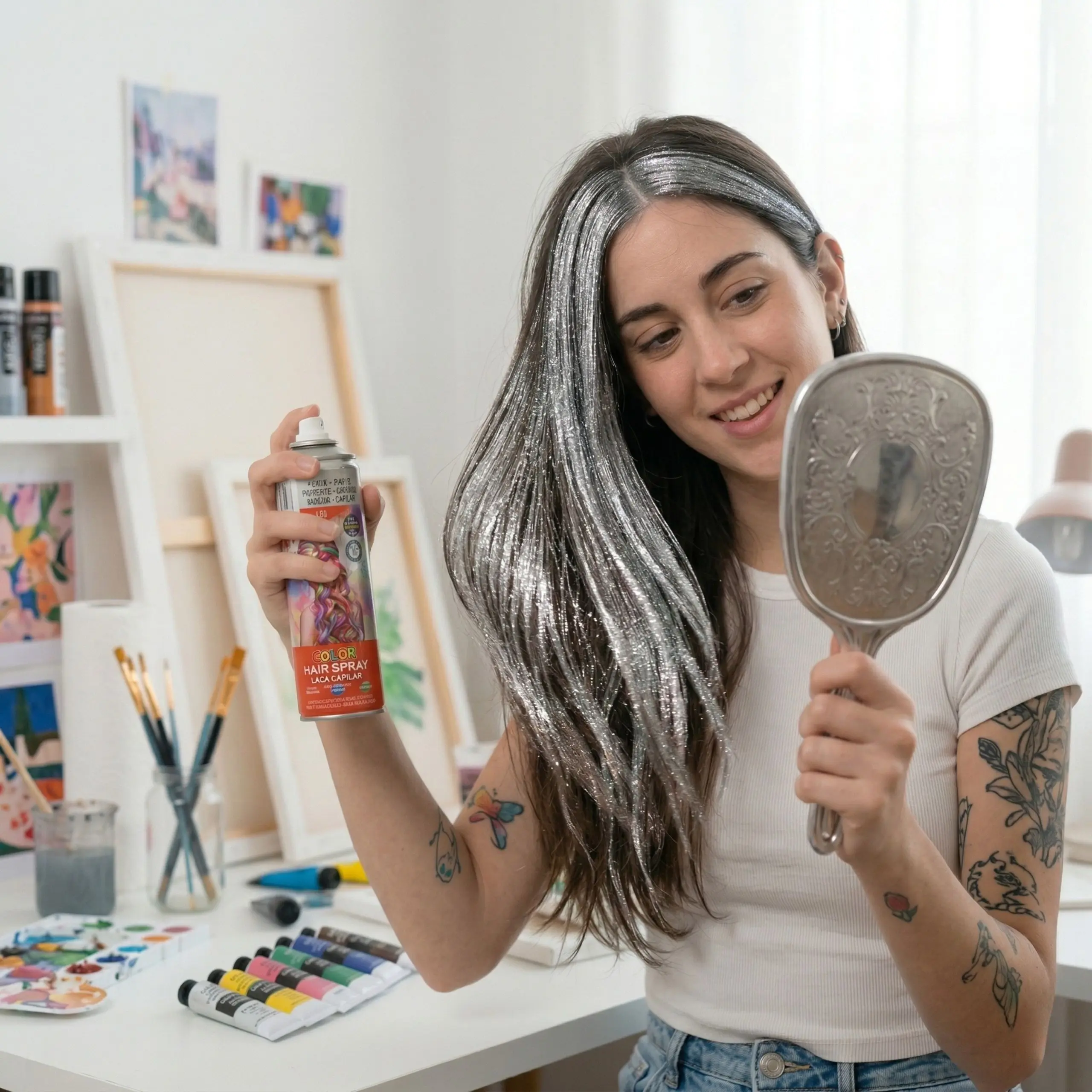 ¡Transforma tu estilo en segundos! Dale a tu cabello un brillo metalizado espectacular con nuestra laca de colores para el pelo. La solución perfecta para quienes buscan un tinte temporal en spray de alta calidad, fácil de aplicar y, sobre todo, fácil de lavar.