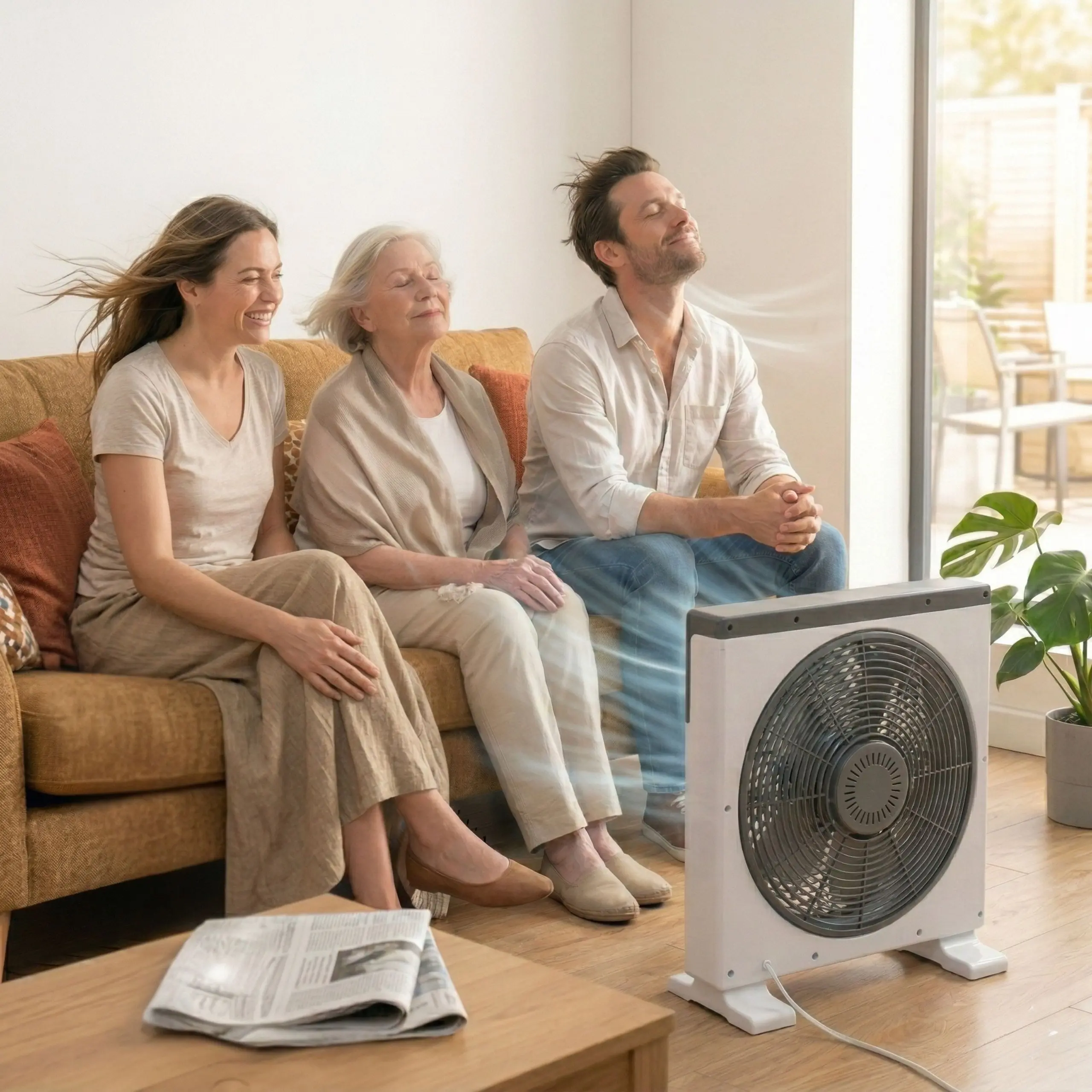 Disfruta de un ambiente perfecto con el ventilador de caja más eficiente. Diseñado para ofrecer una distribución de aire homogénea, este ventilador potente para casa combina tecnología de rejilla rotativa y un motor de bajo consumo para mantener tu hogar fresco sin ruidos molestos.